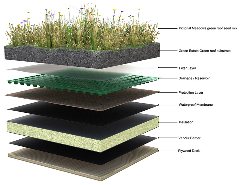 High-quality green roof membranes can last 40–50 years, while drainage and growth media can last the lifetime of the building with proper maintenance.